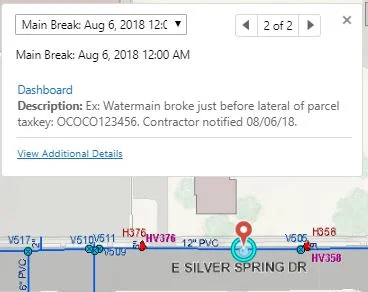 If you’d like to update the status of the main break event, select the pipe section or the water drop marker to bring you back to the attribute dashboard.